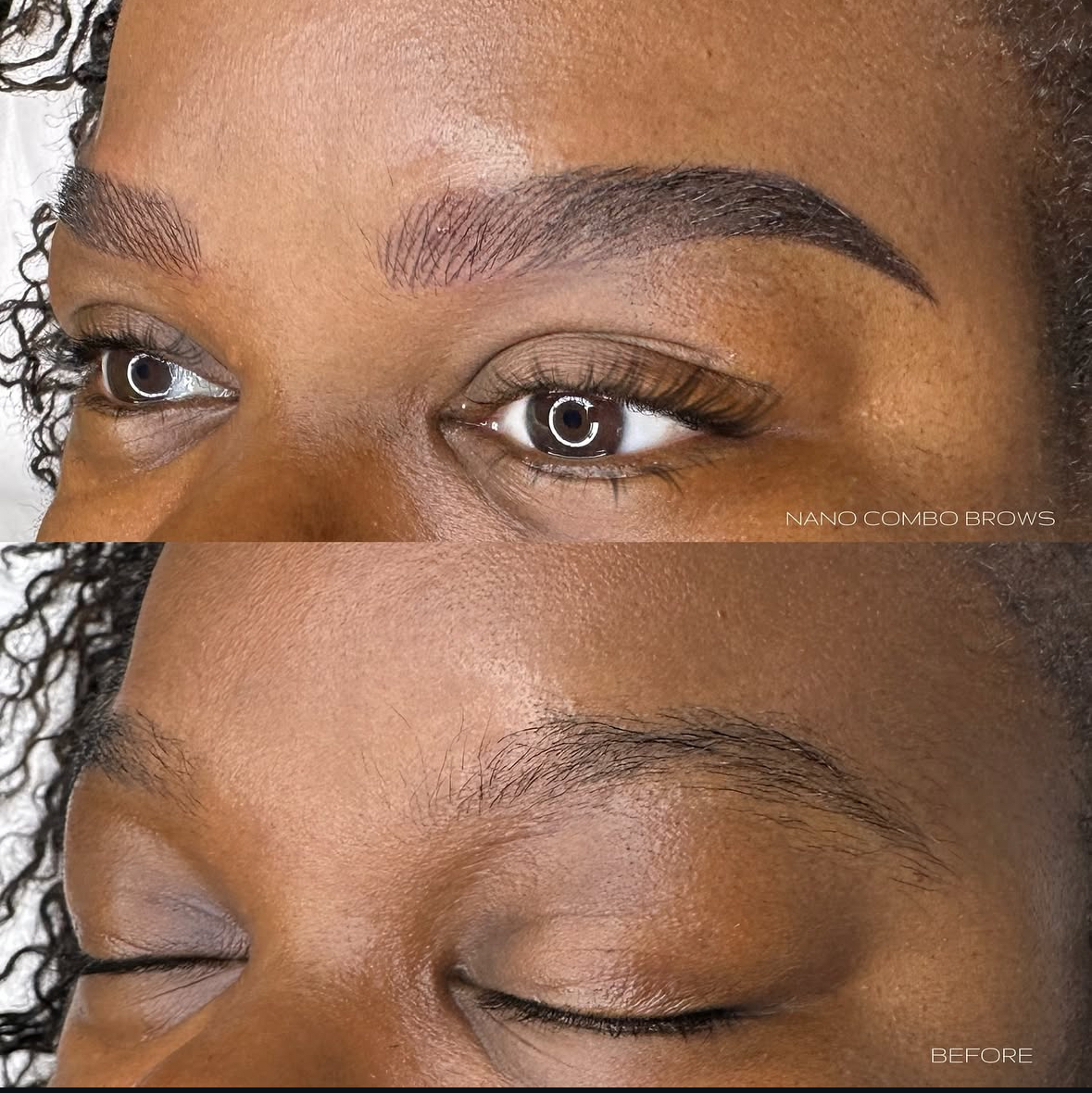 A hybrid technique that blends microblading (hair strokes) and shading (powder brows). Gives both definition and a natural look with fullness.
